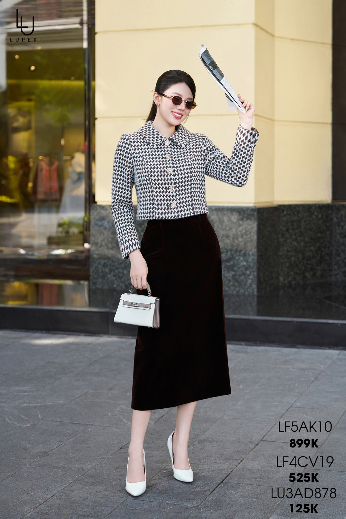 Áo dạ tweed dệt phối màu LF5AK10 tay dài 2 lớp sang trọng tinh tế