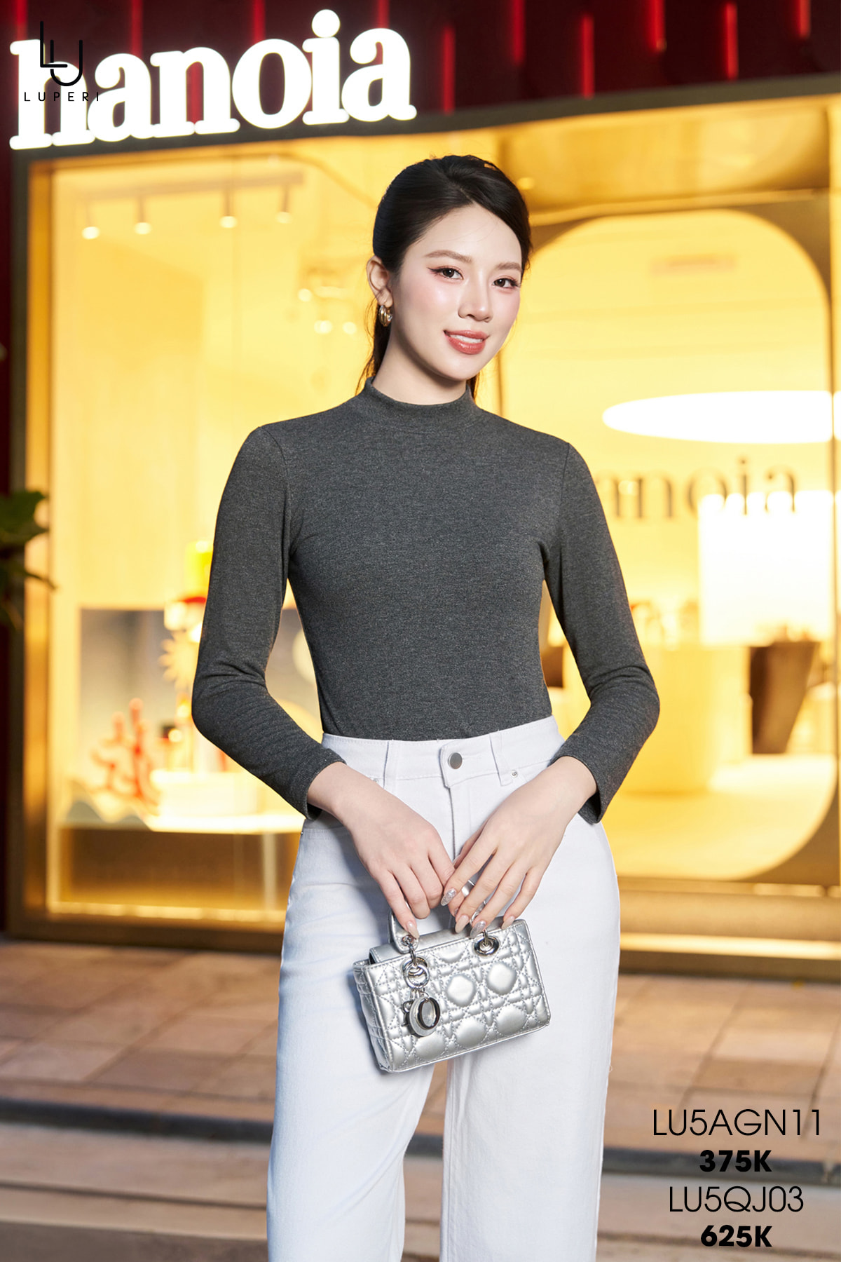 Áo giữ nhiệt trơn cổ 3P LU5AGN11 tay dài mềm mại co giãn tốt