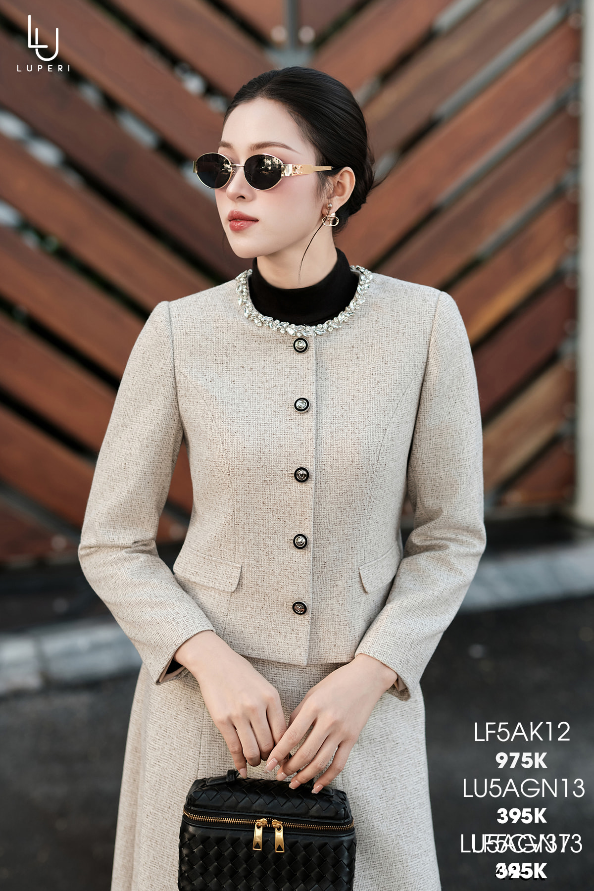 Áo khoác đính đá cổ sang trọng LF5AK12 tay dài 2 lớp cúc đẹp tinh tế