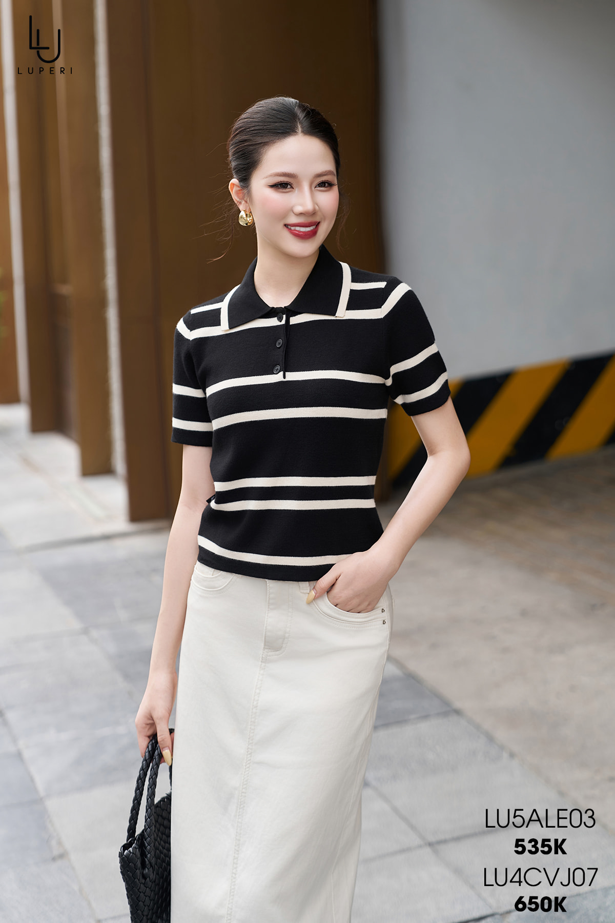 Áo len cổ polo kẻ ngang Mongtoghi LU5ALE03 mềm mịn co giãn