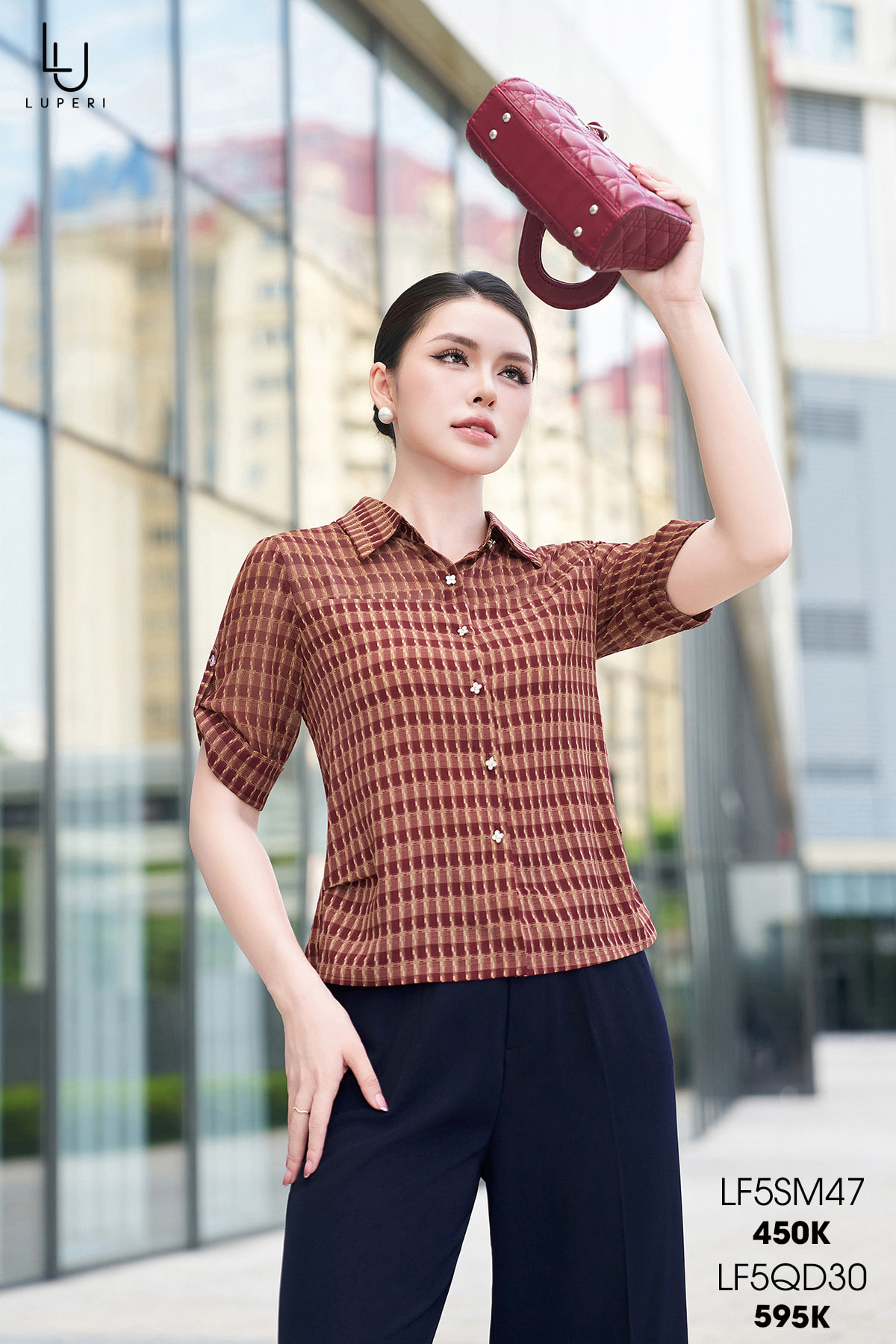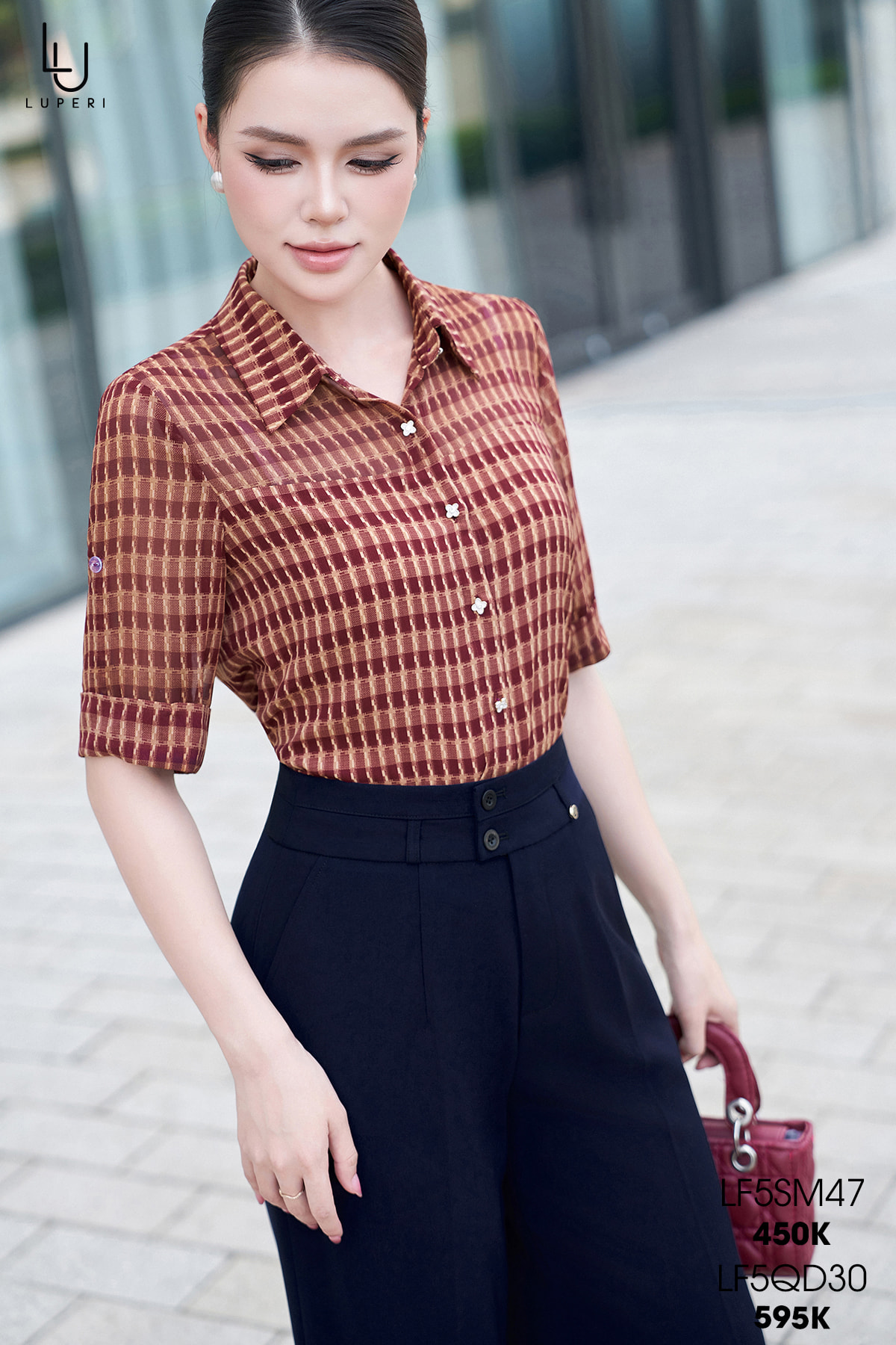 Áo sơ mi cổ đức LF5SM47 dáng suông tay lửng trẻ trung thanh lịch