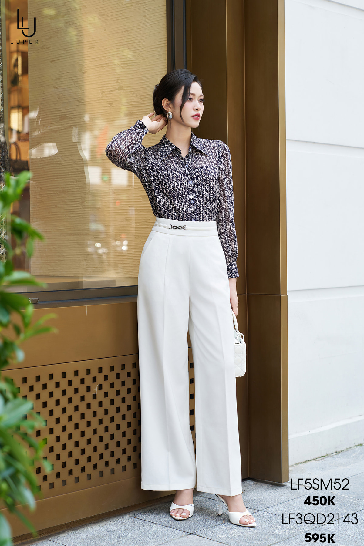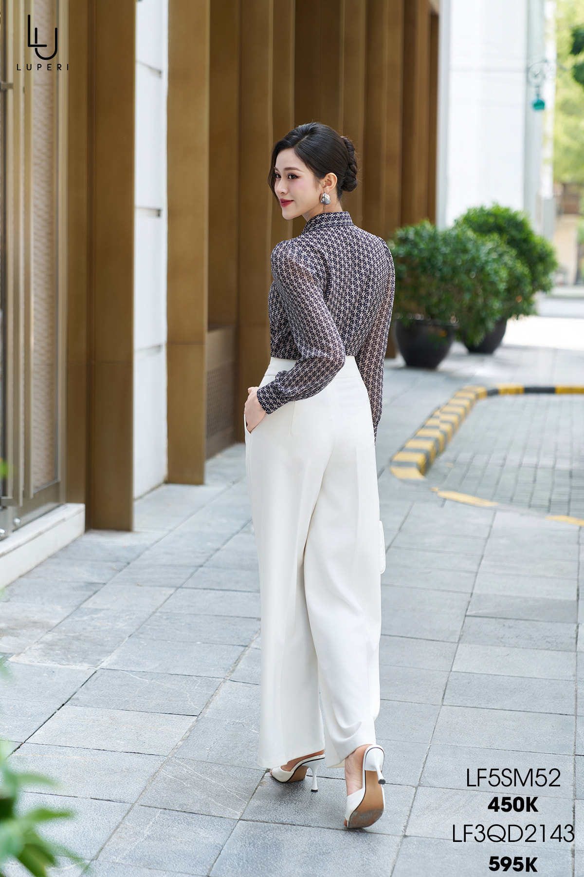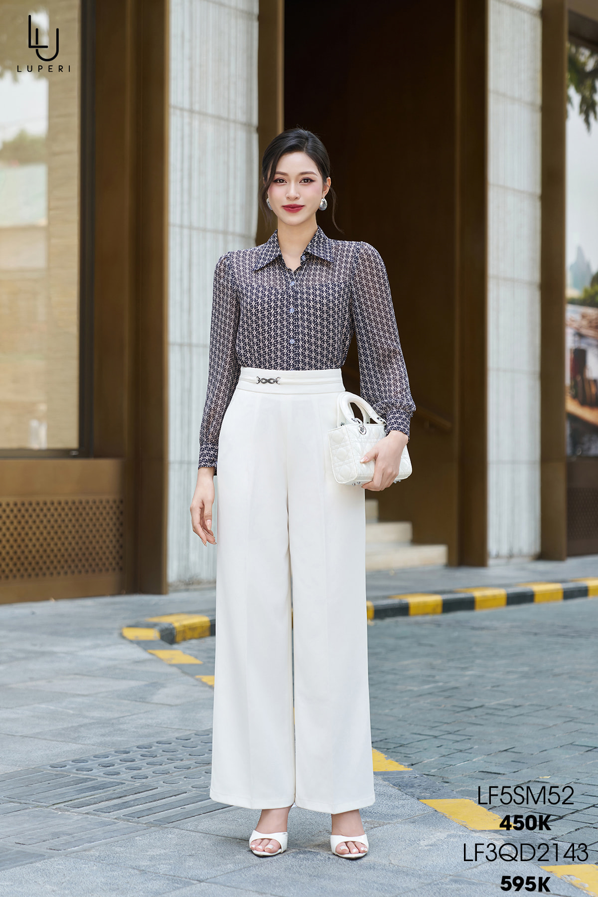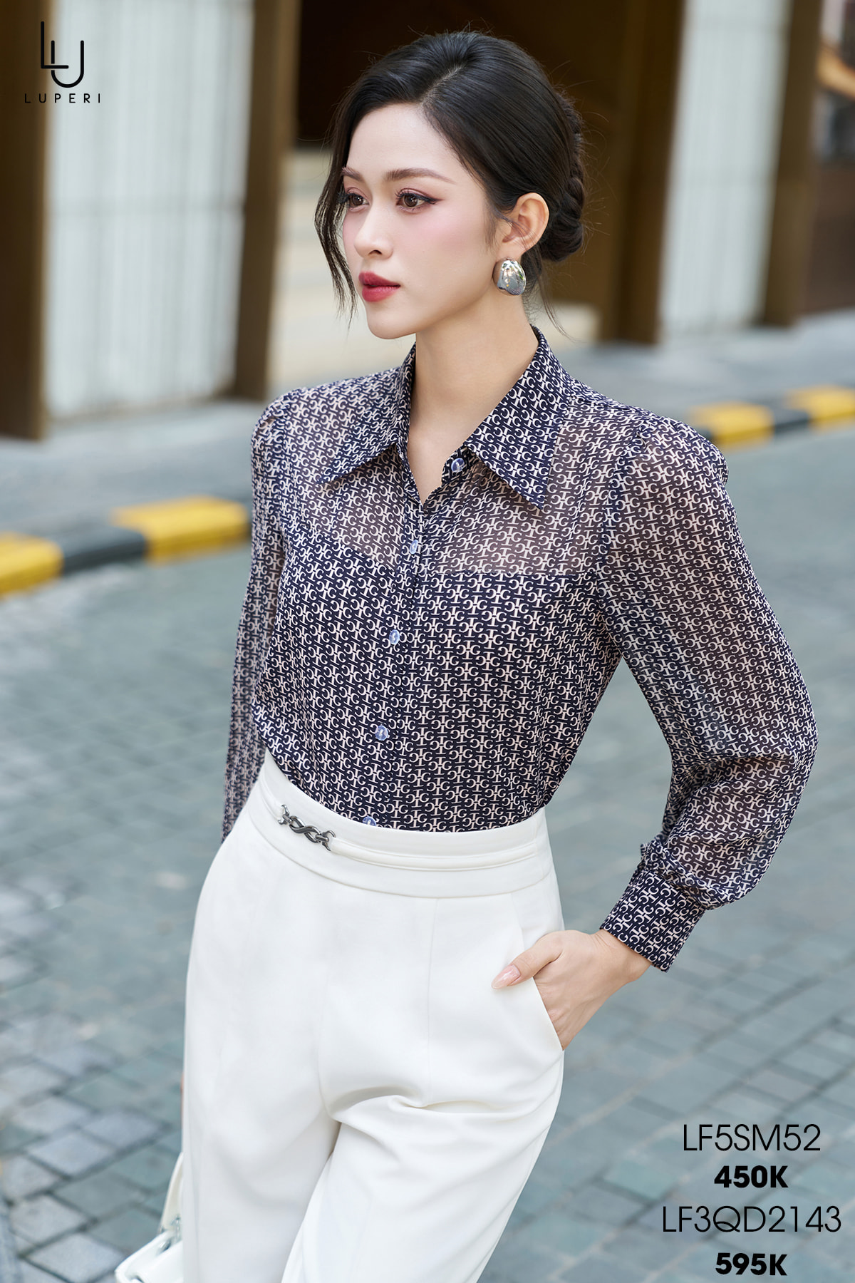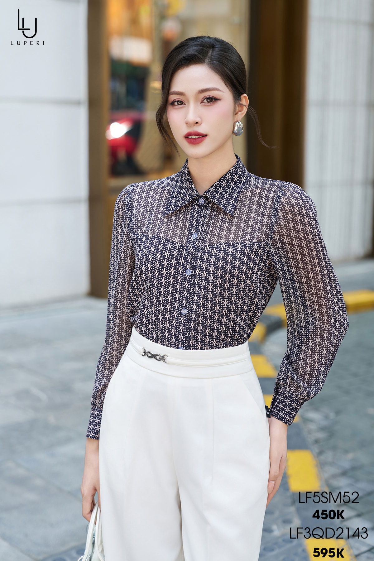 Áo sơ mi cổ đức LF5SM52 phối vải mỏng dáng tay dài trẻ trung thanh lịch