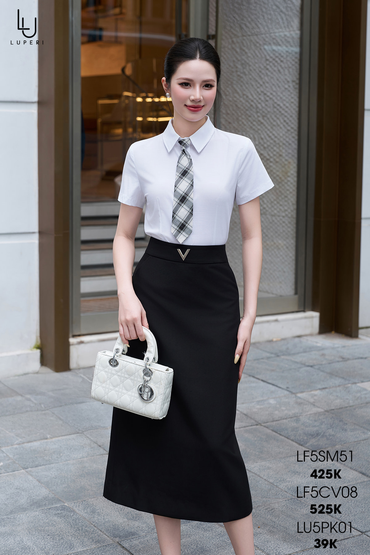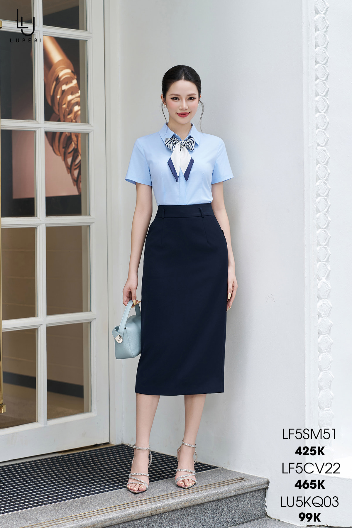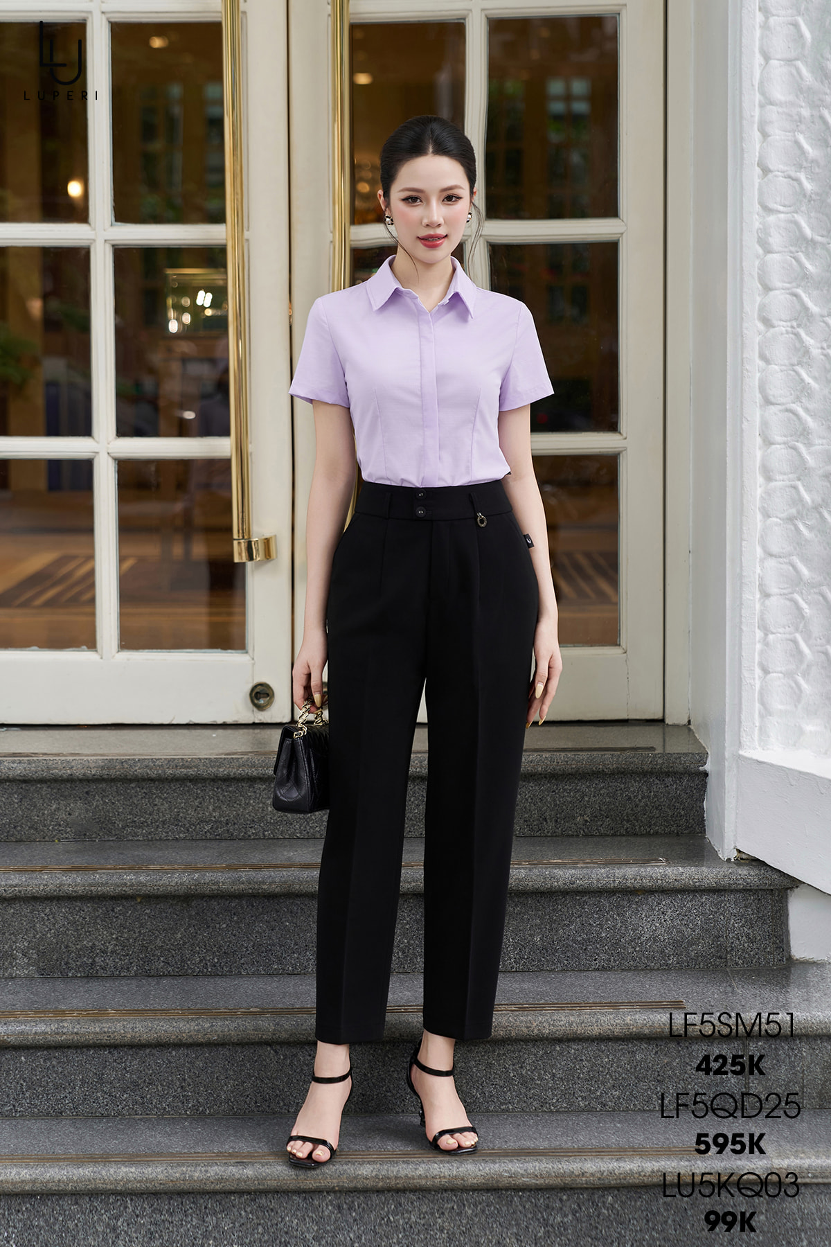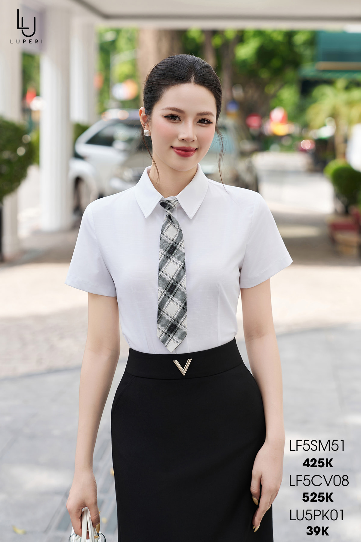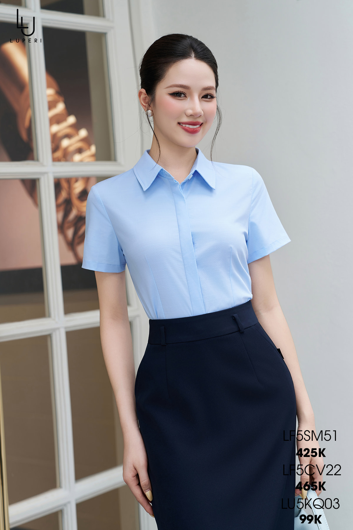 Áo sơ mi trơn LF5SM51 tay ngắn cổ đức chất liệu mềm mại