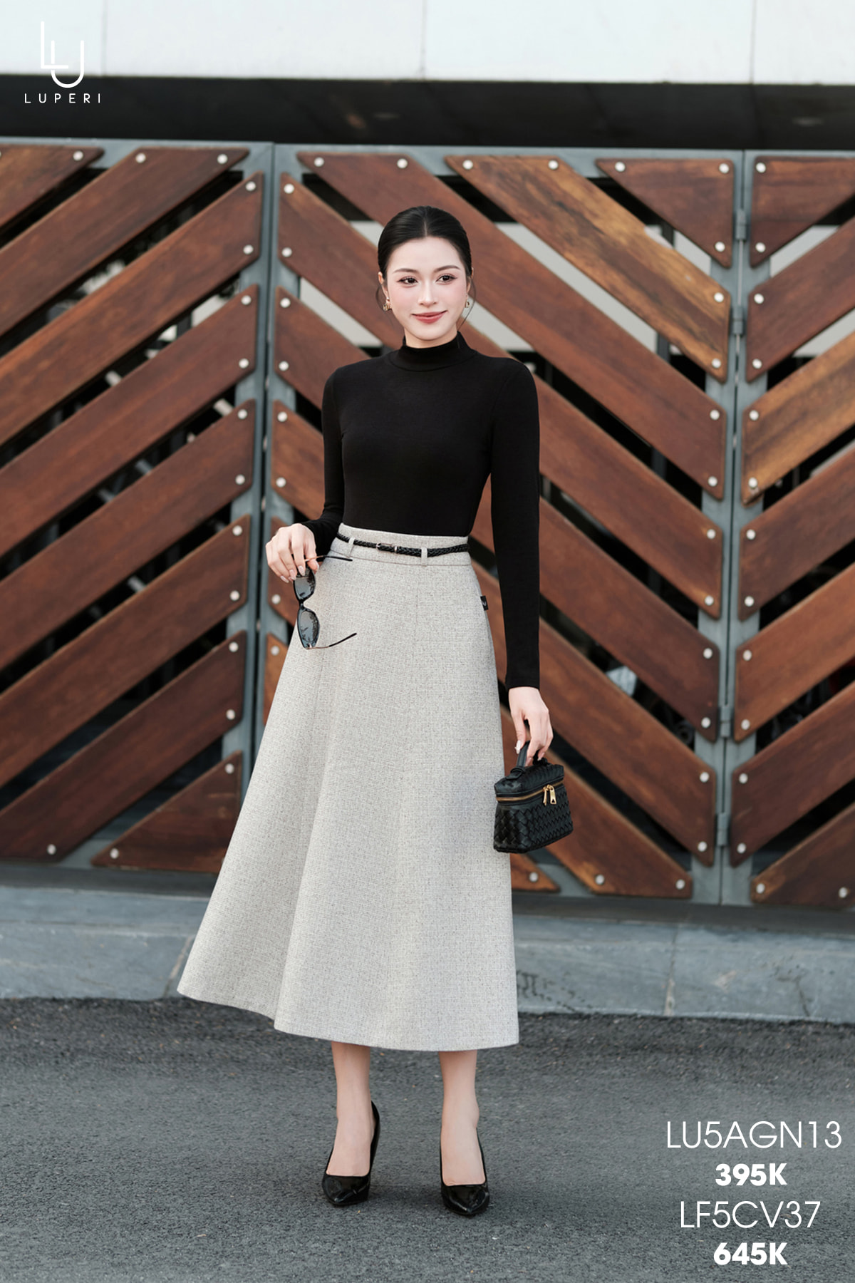 Chân váy dạ LF5CV37 dáng xòe vừa dài thanh lịch cho nàng công sở