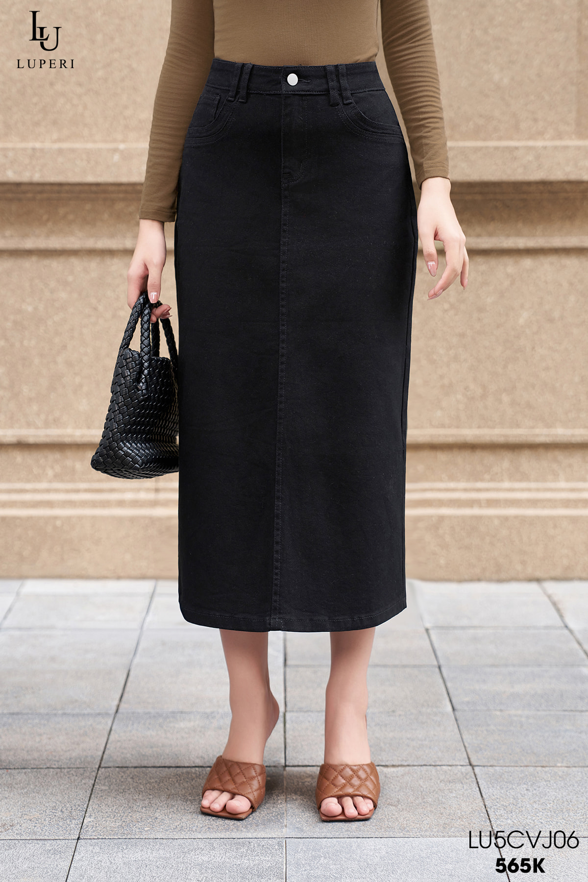 Chân váy Jeans dáng bút chì LU5CVJ06 xẻ sau co giãn trẻ trung