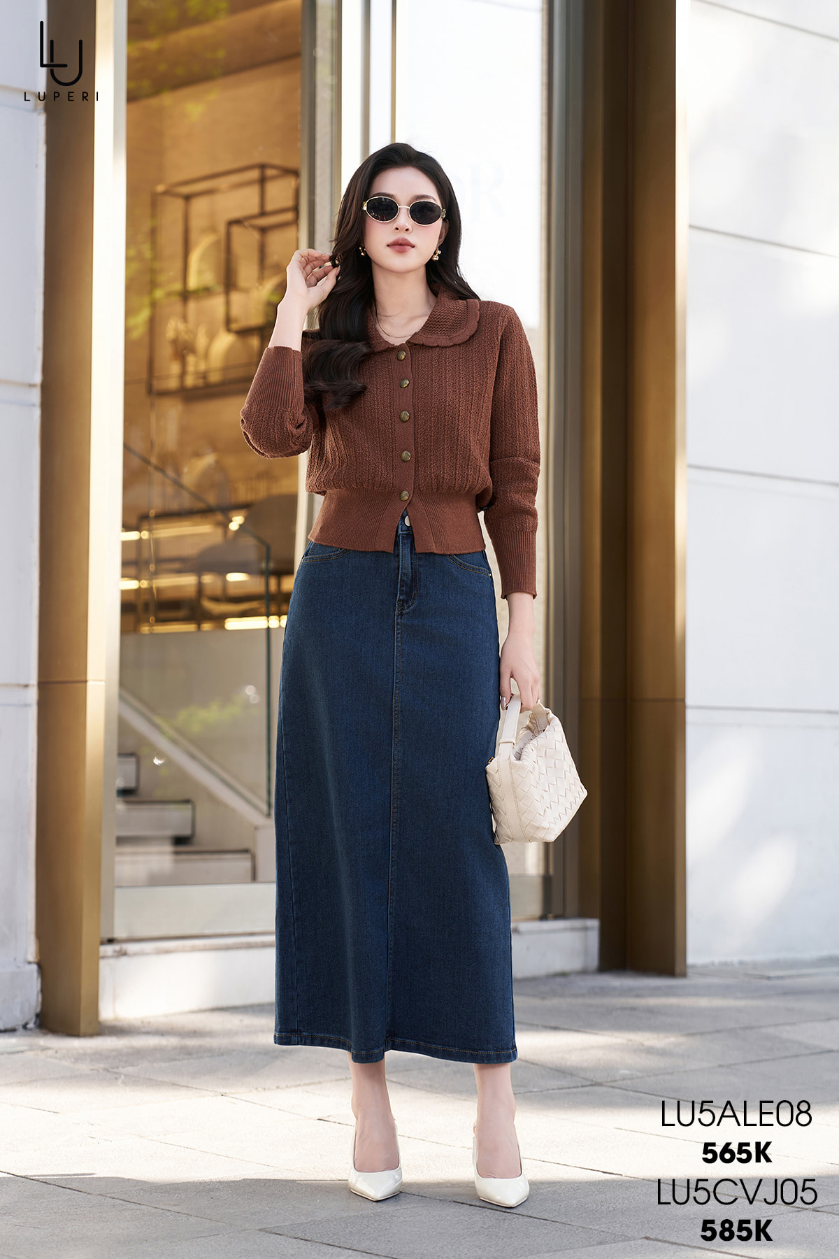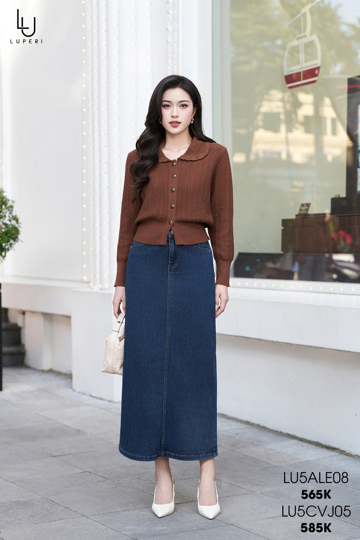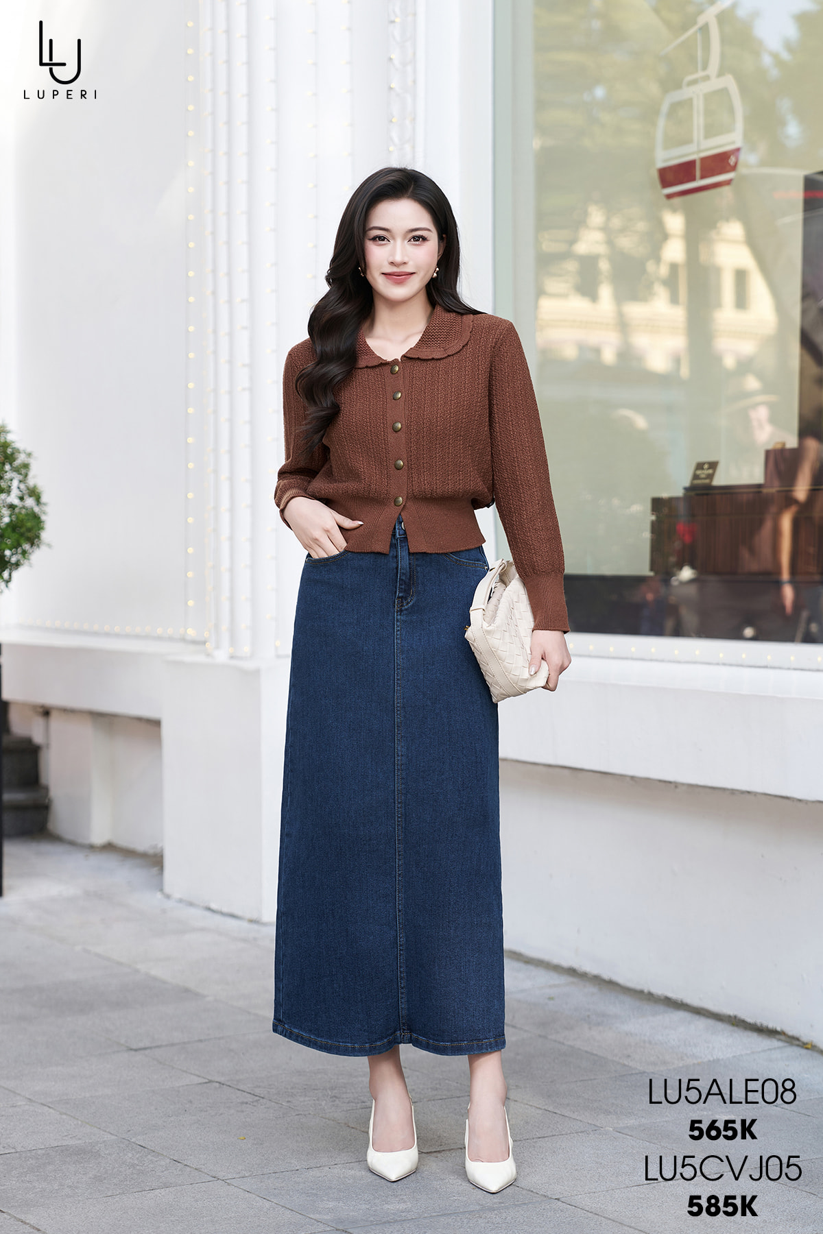 Chân váy jeans LU5CVJ05 dáng A dài trẻ trung hiện đại