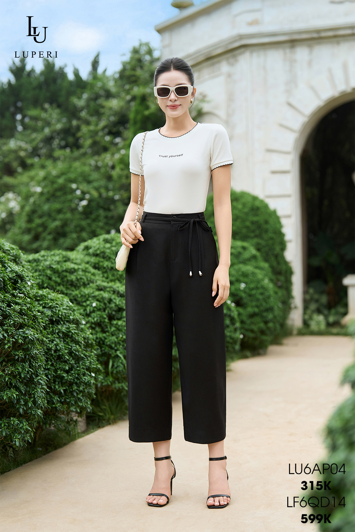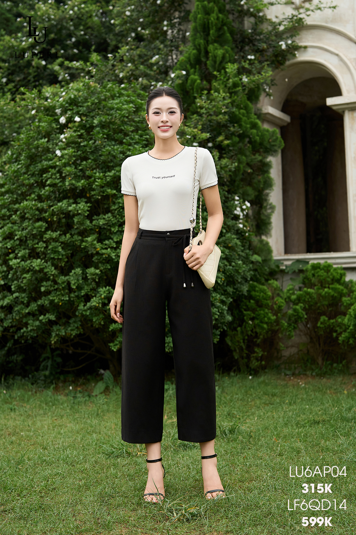 Quần suông bom LF6QD14 cạp cao có dây thắt nơ trẻ trung hiện đại