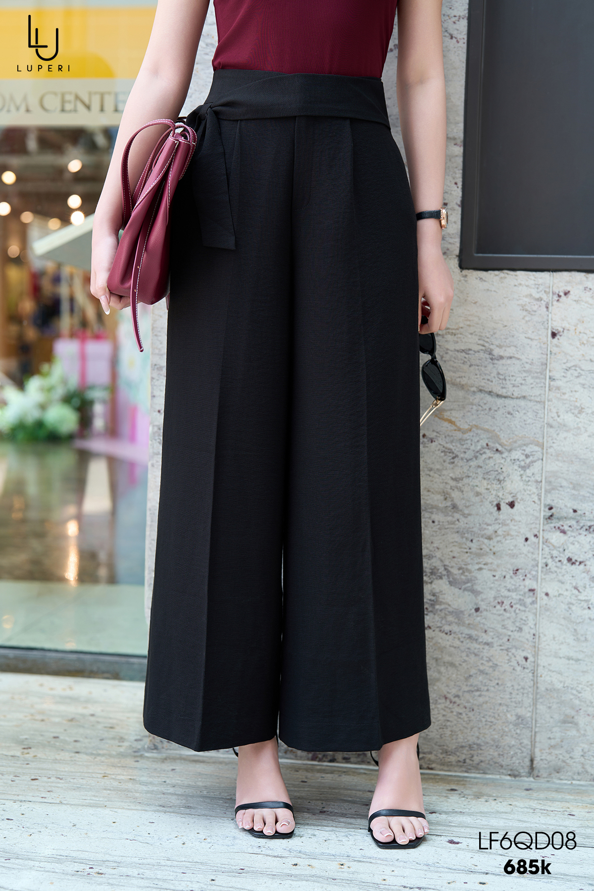 Quần suông váy LF6QD08 ống rộng cạp cao có dây vắt chéo trẻ trung hiện đại